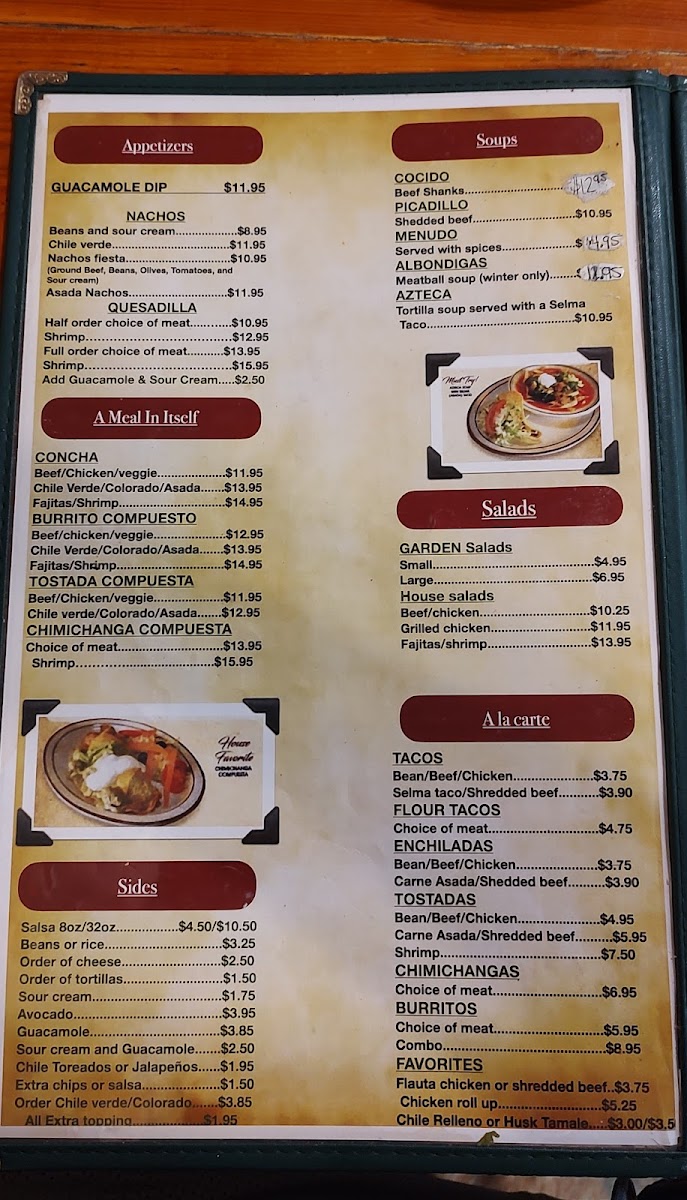 Rodolfo's Selma offers a diverse and enticing menu that caters to a wide range of tastes, with everything from hearty meals to refreshing beverages. Their Nachos come in several delicious variations, such as Beans and Sour Cream and Chile Verde, with the Nachos Fiesta being a crowd favorite. For those looking for a meal that satisfies on its own, their Burrito Compuesto and Tostada Compuesta are standout choices, providing a rich combination of flavors and textures. The Chimichanga Compuesta is also a must-try for those craving something crispy and filling.
